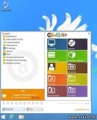 8StartButton - программа, которая не только возвращает в Windows 8 традиционную кнопку и меню Пуск, но и добавляет некоторые полезные функции: можно будет быстро выключить, перезагрузить или заблокировать компьютер с помощью простого щелчка мыши.